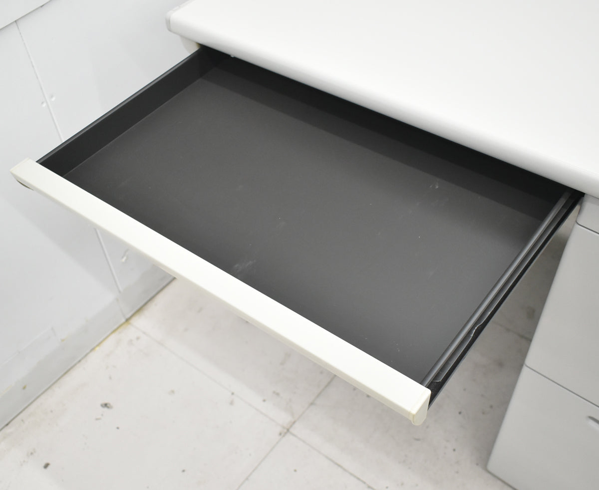 ■備考 オカムラ SDスタンダード片袖デスク107 幅1000 オカムラのSD片袖デスクです。 幅1000のコンパクトな天板でありながら、天板奥に配線口が2個付いていてコード類をすっきりまとめられ、広く作業ができます。足元も広く取れる形状のデスクなので窮屈さを感じにくいです。 設置場所が限られていたりオフィス自体がコンパクトな方にもオススメの事務机です。 ※鍵付。 ※複数入荷商品中の代表的な1台を撮影したものです。中古品ですので全く同じ状態というわけではありませんが、概ね掲載画像程度のものをお届けするものとご理解ください。 ※佐川急便ではなくトールエクスプレスジャパン・西濃運輸・自社便・チャーター便・チャーター便(混載)等で弊社の判断によりお届け方法を決定させていただきます。 4t車が進入できる路上までのお届けとなります。 トラック荷台上でのお引渡しとなります。 男性2名以上での荷受けを推奨しております。 日曜祝日の配達日指定が出来ません。 配達時間帯指定が出来ません(9~17時着・配達当日配送ルートが決まるため)。 4t車が進入できない場所への配送・日曜祝日着・配達時間帯指定・トラックからの荷下ろし作業・搬入作業・組立作業等をご希望である場合はお見積りにて対応となりますのでお申し付けください(お見積りできない場合がございます)。 クリーニングとメンテナンスをしっかり行ってお届けします。 この商品の程度は中古品として美品といえます。 多少の擦れや傷はあるものの気になる程ではないでしょう。 御使用端末の環境により多少画像の表示色と実物の色に差違が生じる場合がございますのでご了承ください。 |